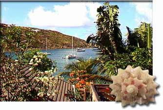 Sheltered, beautiful but wild, Marigot is the only gray-sand beach on the island. One of its main attractions are the lovely palm trees bordering the beach.. |